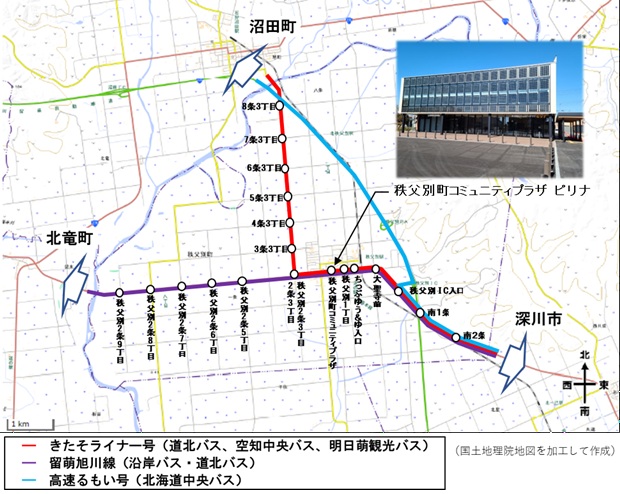 - 町内のバス停留所は、「秩父別役場前」「秩父別農協前」を廃止、「秩父別町コミュニティプラザ」を新設