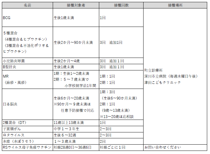 町立診療所と深川市内小児科等の3つの病院が選べます。 お子さんの体調の良い時に接種して下さい。