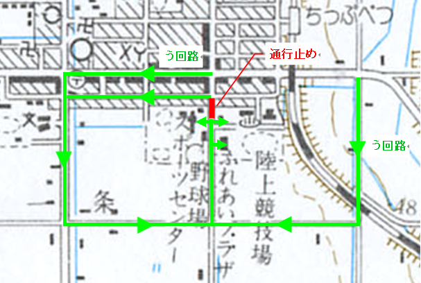 通行止め箇所、う回路